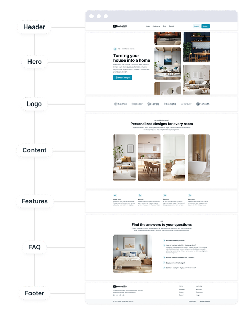 A huge collection of pre-designed pages, blocks, and elements to help you build stunning websites.