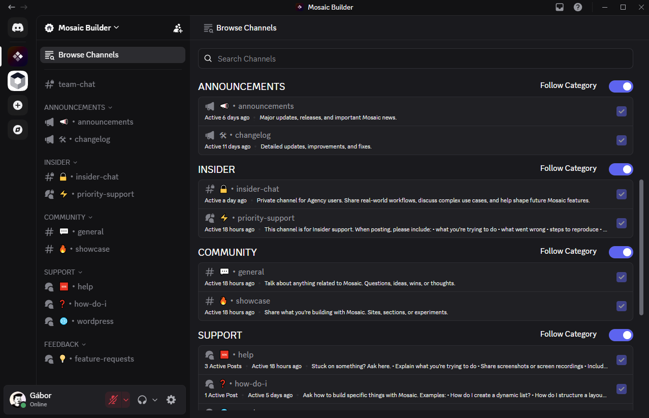 Join the Mosaic Discord community and get access to insider tips, updates, and exclusive content! Follow the steps below to quickly and easily unlock the Insider channel.