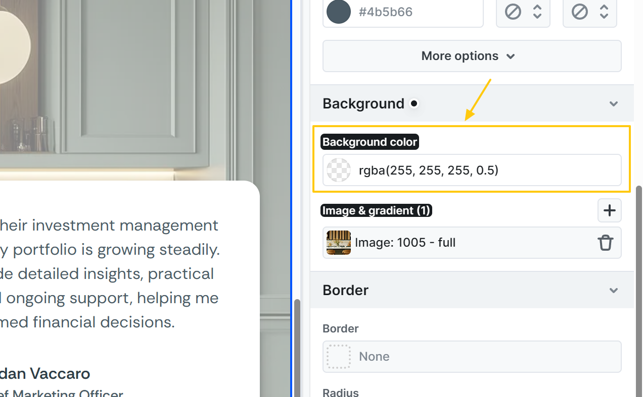 2. Add a white Background color with some transparency, for example:rgba(255, 255, 255, 0.5)