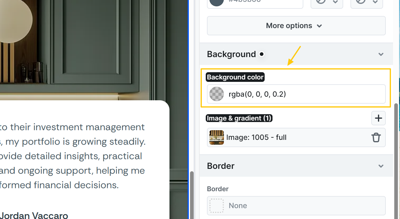 In the Border section, you have the flexibility to customize the look of your element’s borders. You can easily adjust the border radius to create rounded corners or set borders for one or more sides.