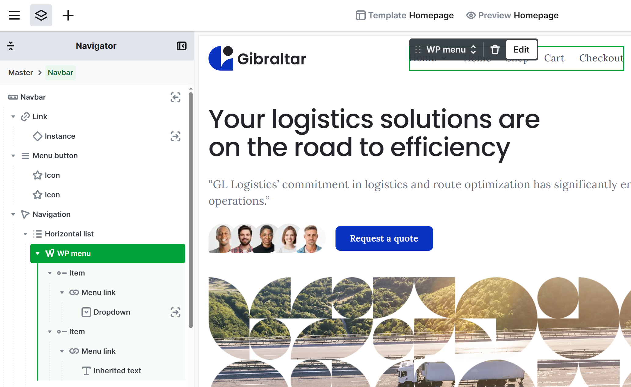 This holds all your navigation links. The Menu links inside this container are typically text-based and usually direct users to different pages or sections of your website. You can add both the Navigation and the Menu link elements through the Add panel.