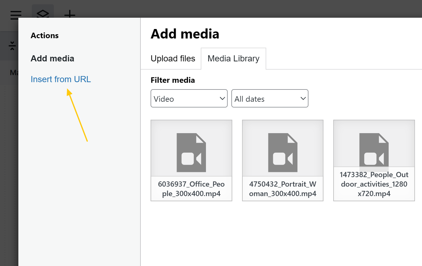 To add a video, select a file from the media library. You can add or replace the video by double-clicking the element, using the toolbar’s Edit option, or accessing the settings in the Settings tab.