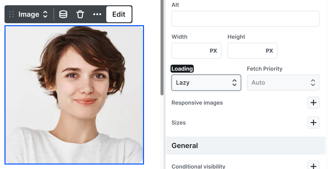 At the settings of Image elements, use Loading – Lazy, to delay the loading of images to when they become visible.