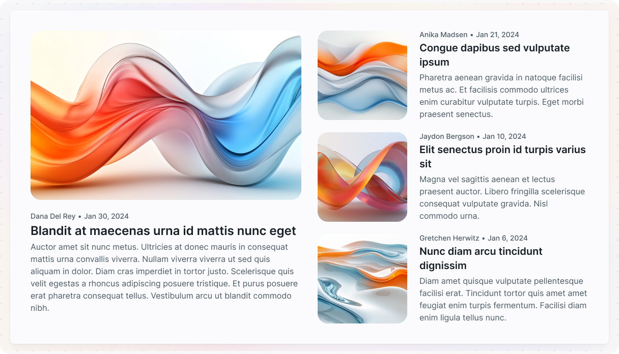 To maintain an organized look, it’s important to set the same space between each row. In this design, the original layout had two columns for posts beneath a single column, so the items are designed to stretch across two columns in width.